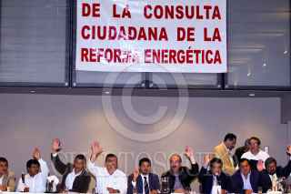 MÉXICO, D.F., 08JUNIO2008.- Presidentes Municipales y Jefes Delegacionales del PRD, encabezados por el secretario de Gobierno local, José Ángel Ávila, se reunieron para impulsar una consulta ciudadana sobre la Reforma Energética. FOTO: ISAAC ESQUIVEL/CUARTOSCURO.COM