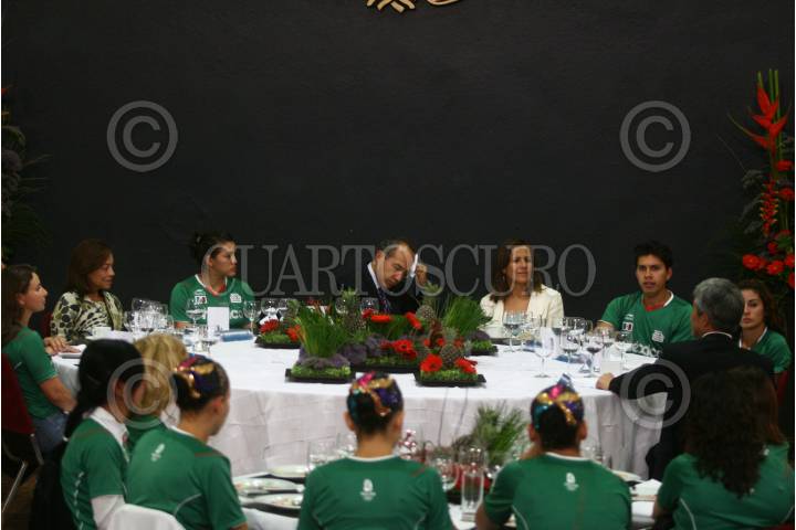 MÉXICO, D.F., 09JUNIO2008.- Felipe Calderon Presidente de México entrega a Paola Espinoza su uniforma que usara en las olimpiadas durante la 2ª Reunión de Integración de la Delegación Mexicana en vísperas de los XXIX Juegos Olímpicos Beijing 2008. FOTO: SÁSHENKA GUTIÉRREZ/CUARTOSCURO.COM