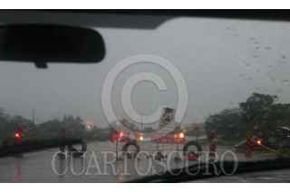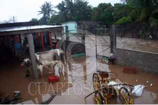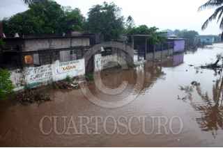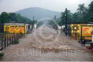JUCHITAN DE ZARAGOZA, OAXACA, 10JUNIO2008.- El mal tiempo golpea al Sureste mexicano y a consecuencia de las fuertes lluvias provocadas por la onda tropical número 4, el río "Los Perros" se desbordó en este municipio. El Servicio Metereológico Nacional adelantó que este fin de semana se espera un potencial de lluvia mayor al 80 por ciento con actividad eléctrica y granizo. FOTO: MAX NUÑEZ/CUARTOSCURO.COM