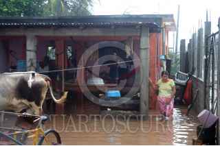 JUCHITAN DE ZARAGOZA, OAXACA, 10JUNIO2008.- El mal tiempo golpea al Sureste mexicano y a consecuencia de las fuertes lluvias provocadas por la onda tropical número 4, el río "Los Perros" se desbordó en este municipio. El Servicio Metereológico Nacional adelantó que este fin de semana se espera un potencial de lluvia mayor al 80 por ciento con actividad eléctrica y granizo. FOTO: MAX NUÑEZ/CUARTOSCURO.COM