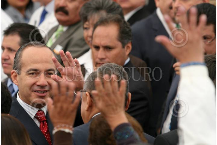 MÉXICO. D.F., 10JUNIO2008.- Felipe Calderón Hinojosa, Presidente de México, encabezo la inauguración de el Hospital General Regional del Sur y dió el banderazó de salida de 117 Ambulancias, que esta ubicada en Calzada de las Bombas al sur de la capital. FOTO: MOISÉS PABLO/CUARTOSCURO.COM