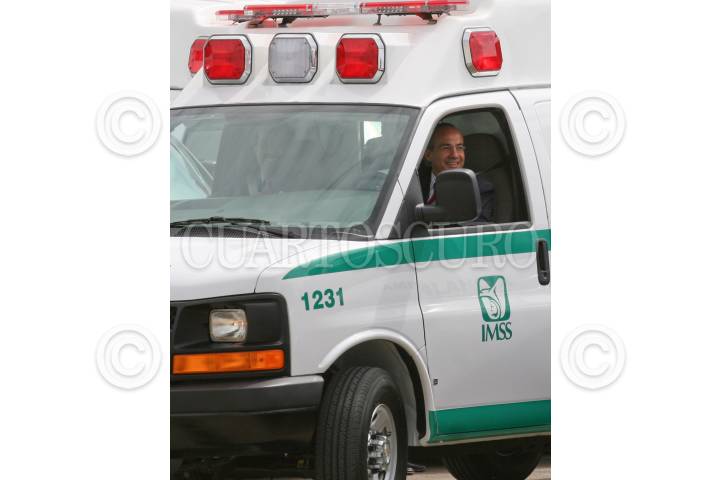 MÉXICO. D.F., 10JUNIO2008.- Felipe Calderón Hinojosa, Presidente de México, encabezo la inauguración de el Hospital General Regional del Sur y dió el banderazó de salida de 117 Ambulancias, que esta ubicada en Calzada de las Bombas al sur de la capital. FOTO: MOISÉS PABLO/CUARTOSCURO.COM