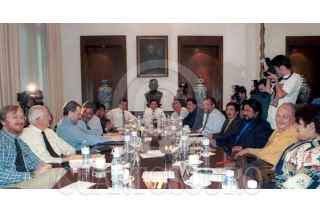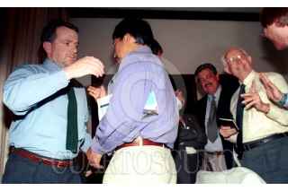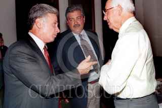 El senador Demetrio Sodi dialoga con Don Luis H. Alvarez despues de la reunion que sostuvieron legisladores de la COCOPA con Santiago Creel secretario de Gobernacion para tratar el tema de la liberacion de presos zapatistas. FOTO:Oswaldo Ramirez/CUARTOSCURO.COM