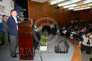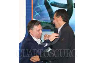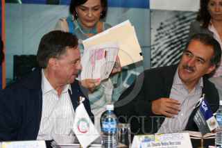 CUERNAVACA., MORELOS, 10JUNIO2008.- El Procurador de la República, Eduardo Medina Mora, y el gobernador de Morelos, Marco Antonio Adame, durante el primer el simposium internacional de genetica forense. FOTO:SAÚL LOPEZ/CUARTOSCURO.COM
