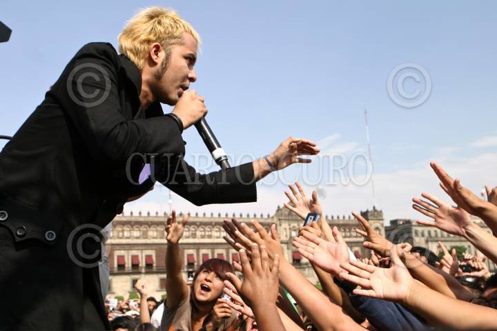 MÉXICO, D.F., 13JUNIO2008.- El grupo La Cuca durante su participación en el concierto Prepa Sí que organizo el Instituto de la Juventud en el Zócalo capitalino al cual asistieron cientos de jóvenes. FOTO: RODOLFO ANGULO/CUARTOSCURO.COM