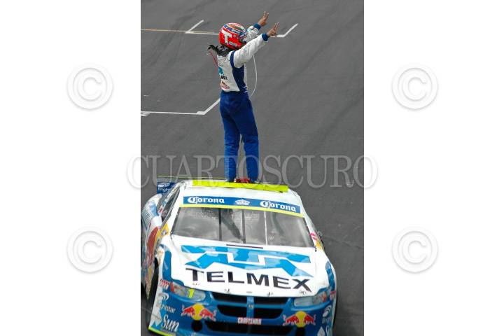 PUEBLA, PUEBLA, 15JUNIO2008.- El piloto Antonio Pérez del equipo Telmex obtuvo el 1er lugar de la 6ta fecha del Nascar Corona Series 2008 que se realizo en el autodromo Miguel E. Abed. FOTO: RODOLFO ANGULO/CUARTOSCURO.COM