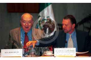 Jesse Helms, presidente del Comité de Relaciones Exteriores del Senado de Estados Unidos, anunció que su país no intervendrá en la decisión de México de apoyar a Cuba en la próxima reunión de la ONU. De visita en México, Helms se estrevistó con el el secretario de Relaciones Exteriores, Jorge G, Castañeda, en las instalaciones de la secretaría. FOTO: Christián Palma/CUARTOSCURO.COM