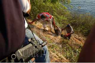 ACAPULCO, GUERRERO.,15 JUNIO2008.- Elementos de la Policía Ministerial localizaron ayer el cuerpo de un desconocido en estado de descomposición, en uno de los acantilados del conjunto habitacional “Bella Miel” a 50 metros de la carretea federal Zihuatanejo- Acapulco. FOTO: MARINO D. VALDEZ/CUARTOSCURO.COM