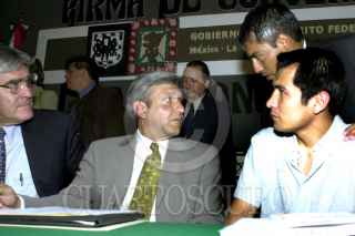 Andrés Manuel Lopéz Obrador, jefe de Gobierno del DF, Nelsón Vargas, presidente de la CONADE y Bernardo Segura, director del Instituto del Deporte del DF, firmaron un convenio para para mejorar el deporte, tambien estuvo presente el campeon de Box, Marco Antonio Barrera. FOTO:Oswaldo Ramirez/CUARTOSCURO.COM