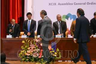 MÉXICO, D.F., 20JUNIO2008.- Felipe Calderon Presidente de México, durante la XCIX asamblea general ordinaria del Instituto Mexicano del Seguro Social. FOTO: EDUARDO MORALES /CUARTOSCURO.COM