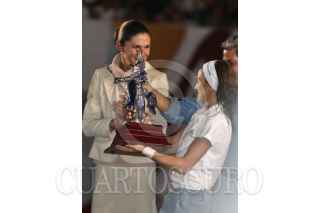 MÉXICO, D.F., 21JUNIO2008.- Ana Gabriela Guevara hace entrega de un reconocimiento a la clavadista olímpica Paola Espinosa al final de una exhibición que se realizo en la Alberca Olímpica. FOTO: RODOLFO ANGULO/CUARTOSCURO.COM