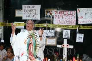MEXICO, D.F. 27JUNIO2008.- Familiares y amigos de los jovenes fallecido en el New´s Divine realizaron esta tarde una misa a las afueras de la discoteca, ubicada en la avenida Eduardo Molina y la calle 312, en la delegacion Gustavo A. Madero. FOTO: SAUL LOPEZ/CUARTOSCURO.COM