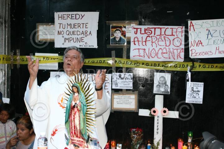 MEXICO, D.F. 27JUNIO2008.- Familiares y amigos de los jovenes fallecido en el New´s Divine realizaron esta tarde una misa a las afueras de la discoteca, ubicada en la avenida Eduardo Molina y la calle 312, en la delegacion Gustavo A. Madero. FOTO: SAUL LOPEZ/CUARTOSCURO.COM