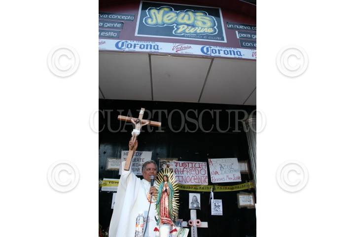 MEXICO, D.F. 27JUNIO2008.- Familiares y amigos de los jovenes fallecido en el New´s Divine realizaron esta tarde una misa a las afueras de la discoteca, ubicada en la avenida Eduardo Molina y la calle 312, en la delegacion Gustavo A. Madero. FOTO: SAUL LOPEZ/CUARTOSCURO.COM