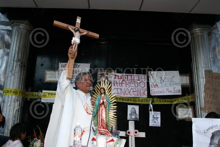 MEXICO, D.F. 27JUNIO2008.- Familiares y amigos de los jovenes fallecido en el New´s Divine realizaron esta tarde una misa a las afueras de la discoteca, ubicada en la avenida Eduardo Molina y la calle 312, en la delegacion Gustavo A. Madero. FOTO: SAUL LOPEZ/CUARTOSCURO.COM