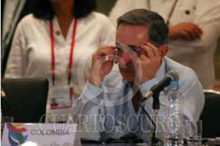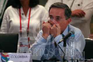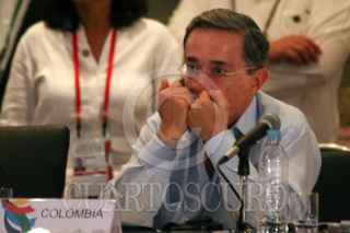 VILLAHERMOSA, TABASCO, 28JUNIO2008.- El polemico presidente de Colombia Alvaro Uribe en su participación de la X Cumbre del Mecanismo de Diálogo y Concertación de Tuxtla México. FOTO: MARCO POLO GUZMÁN HERNÁNDEZ/CUARTOSCURO.COM