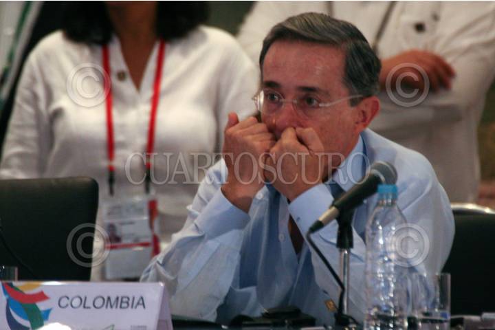 VILLAHERMOSA, TABASCO, 28JUNIO2008.- El polemico presidente de Colombia Alvaro Uribe en su participación de la X Cumbre del Mecanismo de Diálogo y Concertación de Tuxtla México. FOTO: MARCO POLO GUZMÁN HERNÁNDEZ/CUARTOSCURO.COM