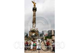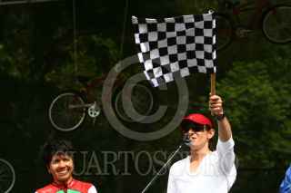 MÉXICO, D.F., 29JUNIO2008.- Belen Guerrero, medallista olimpica en ciclismo, Ana Gabriela Guevara, titular del Instituto del Deporte del DF y Javier Hidalgo, titular del Instituto de la Juventud DF, dieron el banderazo de salida del Ciclotón que este fin de semana cumplió su 1er. Aniversario, la ruta fue del Angel de la Independencia a la Alameda Central. FOTO: IVÁN MENDEZ/CUARTOSCURO.COM