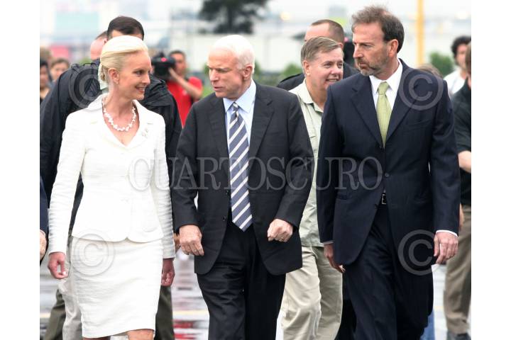MÉXICO D.F., 02JULIO208.- El avión del candidato republicano a la Casa Blanca, John McCain es resguardado por elementos del Servicio Secreto de los Estados Unidos. FOTO: RODOLFO ANGULO/CUARTOSCURO.COM