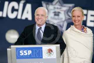 MÉXICO, D.F., 03JULIO2008.- John McCain, candidato a la presidencia de los Estados Unidos de la ala Republicano, acompañado de su esposa Cindy McCain, visitó el Centro de Alto Mando de la Policia Federal Preventiva, ubicado en la delegación Iztapalapa. En su vsita el candidato pudo observar la manera en que la Policia Federal actúa en contra de la delincuencia organizada. FOTO: MOISÉS PABLO/CUARTOSCURO.COM