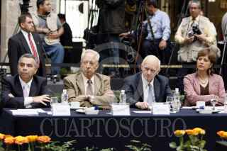 MÈXICO, D.F., 03JULIO2008.- Los ponentes, Enrique Aguilar, Leopoldo Garcia Colin, Leopoldo Rodriguez Sanchez y Rosaura Ruiz Gutierrez durante el foro de Tecnologia e Investigaciòn cientifica en el campo petrolero. FOTOS IGNACIO GONZALEZ/CUARTOSCURO.COM