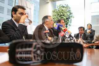 MÉXICO, D.F., 04JULIO2008.- Antonio Morales de la Peña, Procurador Federal del Consumidor y Héctor Osuna titular de la COFETEL, en conferencia de prensa, donde dio a conocer que los usuarios de teléfonos podrán conservar sus numero a un cuando cambien de compañía. FOTO: RICARDO CASTELAN /CUARTOSCURO.COM