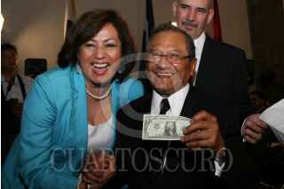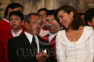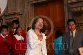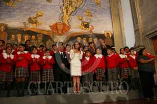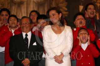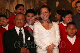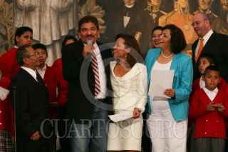 MÉXICO D.F. 04JULIO2008.-Josefina Vázquez Mota, titular de la SEP, acompañada del compositor Armando Manzanero, realizo la presentación del programa Música Mexicana en la escuela “Todos a Cantar” esto en la instalaciones de la SEP. FOTO: GUILLERMO PEREA/CUARTOSCURO.COM