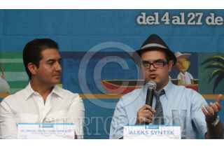 BOCA DEL RÍO, VERACRUZ 04JULIO2008.- El cantante y compositor Alex Syntek acompañado por el presidente municipal Miguel Ángel Yunez, en conferencia de prensa previo a la inaguración del primer festival cultural Boca del Río. FOTO: SÁSHENKA GUTIÉRREZ/CUARTOSCURO.COM