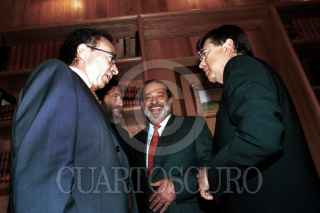 El ex mandatario español Felipe González asistió a la presentación del libro " Comprender la Globalización" ; aquí en un breve intercambio de opiniones con el empresario Carlos Slim. FOTO: Oswaldo Ramirez/CUARTOSCURO.COM