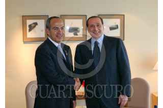 TOYACO, JAPON., 09JULIO2008.- Felipe Calderón Hinojosa, Presidente de México, sostuvó una reunión bilateral con Silvio Berlusconi, Presidente del Consejo de Ministro de Italia, que se realizó en el hotel Windsor. FOTO: ARIEL GUTIERREZ/CUARTOSCURO.COM