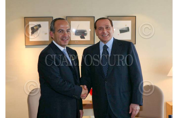 TOYACO, JAPON., 09JULIO2008.- Felipe Calderón Hinojosa, Presidente de México, sostuvó una reunión bilateral con Silvio Berlusconi, Presidente del Consejo de Ministro de Italia, que se realizó en el hotel Windsor. FOTO: ARIEL GUTIERREZ/CUARTOSCURO.COM
