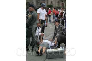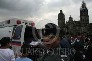 MÉXICO, D.F., 09JULIO2088.- En el 70 aniversario de la creación del Pentathlón Deportivo Militar Universitario que se realizó en el zocalo, se registraron algunos insidentes como desmayos por parte de los integrantes de dicho evento por lo que fue necesario el apoyo de ambulancias para auxiliar a las personas. FOTO: ENRIQUE ORDÓÑEZ/CUARTOSCURO.COM