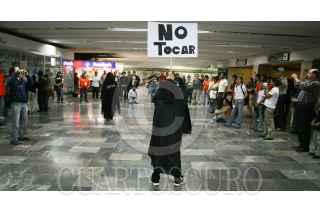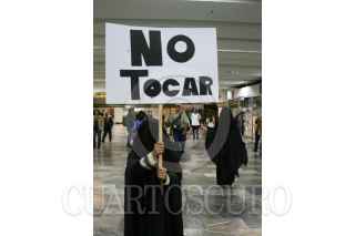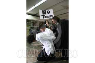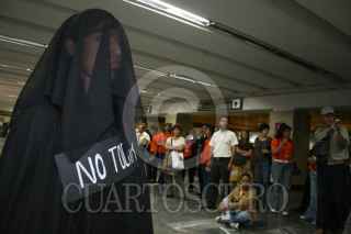 MÉXICO, D.F., 10JULIO2008.- Se realizó un performance en las instalaciones de metro en la estación la Raza, con el tema de acoso sexual, el cual es parte de la campaña, "Jala la Palanca" FOTO: RICARDO CASTELAN/CUARTOSCURO.COM