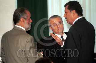 Diego Fernández de Cevallos, Juan José Rodríiguez Pratts y Enrique Jackson, durante un receso en la sesión ordinaria del Senado. FOTO:Oswaldo Ramírez/CUARTOSCURO.COM