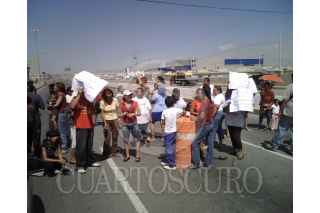 CIUDAD JUAREZ, CHIHUAHUA, 14JULIO2008.- Vecinos de colonias inundadas bloquean el transito vehicular en el Libramiento Aeropuerto, protestaron por varias horas para exigir que alguien se haga responsable de los daños que sufrieron en su patrimonio y piden que se les reubique. FOTO: BIENINFORMADO.COM/CUARTOSCURO.COM
