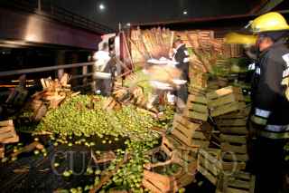 MEXICO, D.F., 16JULIO2008.- Esta madrugada un camión con mas de siete toneladas de tuna, volco sobre avenida oceania hacia el distribuidor Heberto Castillo, hubo afectación durante mas de tres horas. FOTO:LUZ ACEVEDO/CUARTOSCURO.COM