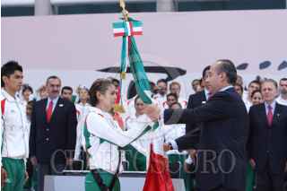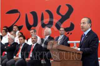 MÉXICO, D.F., 16JULIO2008.- El presidente de lso Estados Unidos Mexicanos, Felipe Calderon Hinojosa, durante el abanderamiento de la delegación mexicana que participará en los "Juegos Olimpicos Beijing 2008", que tuvo lugar en el Centro Nacional de Desarrollo de Talentos y Alto Rendimiento. FOTO: ALFREDO GUERRERO/CUARTOSCURO.COM