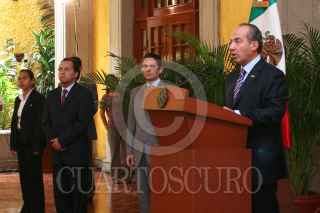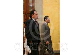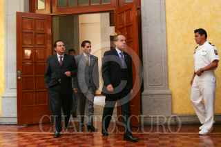 MÉXICO D.F., 16JULIO2008.-El presidente, Felipe Calderón Hinojosa, en un breve mensaje acepto la desición del jefe de gobierno capitalino para la designación de Manuel Mondragón y Kalb como Secretario de Seguridad Pública y ratificó el nombramiento de Miguel Ángel Mancera como titular de la Procuraduría General de Justicia del Distrito Federal.En la imagen, Maximiliano Cortazar, Coordinador de Comunicación de la Presidencia de la República Presidencia y Juan Camilo Mouriño titular de la Secretaria de Gobernación. FOTO: GUILLERMO PEREA/CUARTOSCURO.COM