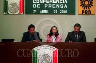 Manuel Durante, Miroslava García y Antonio Magallanes, ofrecieron una conferencia de prensa en San Lázaro donde tocaron el tema de las modificaciones a la ley hacendiaria que se discutirá en tribuna en los próximos días. FOTO: Pedro Mera/CUARTOSCURO.COM
