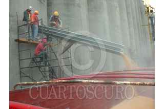 TLALNEPANTLA, ESTADO DE MÈXICO, 16JULIO2008.- Trabajadores realizando obras de descarga de maiz en los silos de grano de la almacenadora del Sur S.A. de C.V. FOTO: MARIO NULO/CUARTOSCURO.COM