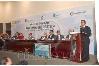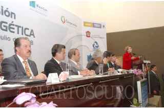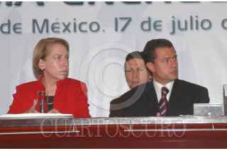 LERMA TOLUCA, EDOMEX, 17JULIO2008.- Georgina Kessel Martínez, secretaria de Energía y Enrique Peña Nieto, gobernador de la entidad, durante el foro de Difusión de la Reforma Energética, donde la funcionaria federal dijo que uno de los objetivos principales de la reforma petrolera, es dar seguridad energética al sostener la producción de crudo, gas y sus derivados. FOTO: CUARTOSCURO.COM