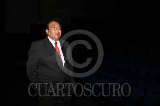 MÉXICO D.F., 18JULIO2008.-Juan Ramón Sáenz, conductor del programa de radio La Mano Peluda, dio a conocer los que sera el espectaculo multimedia "Aquí se Respira el Miedo" que se realizara el proximo 1, 2, y 3 de agosto en el Teatro Aldama. FOTO: GUILLERMO PEREA/CUARTOSCURO.COM