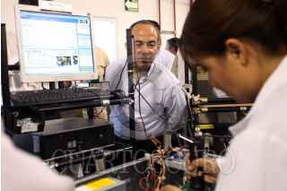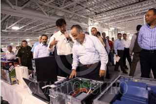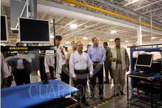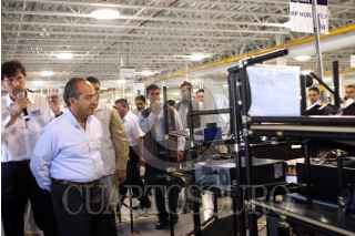 MUNICIPIO DE JUAREZ, CHIHUAHUA., 22 JULIO2008.- Felipe Calderon presidente de México, recorre la planta Flextronics, esta empresa esta dedicada a la fabricación de componentes electrónicos que provee, los productos OEM pueden ser tanto hardware como software, la compañía opera para atender diversos campos incluyendo cómputo, industrial, automotriz y de medicina. FOTO: ALFREDO GUERRERO/CUARTOSCURO.COM