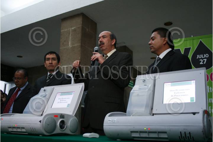 MÉXICO. D.F.22JULIO2008.- Jose Angel Avila secretario de gobierno del D.F., presentó las urnas electrónicas que se usaran en algunos puntos el próximo 27 de julio el día de la consulta ciudadana sobre la reforma energética. FOTO:RICARDO CASTELAN/CUARTOSCURO.COM