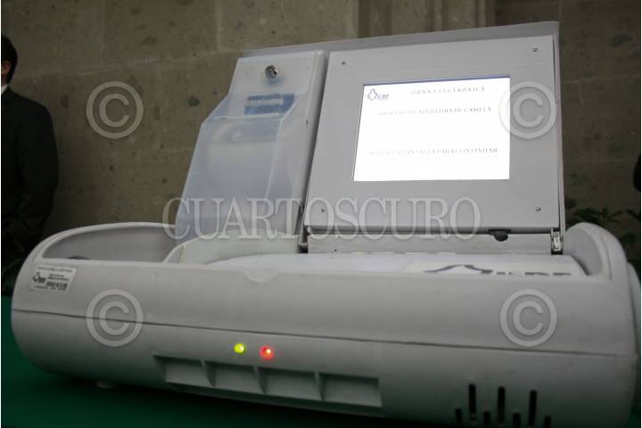 MÉXICO. D.F.22JULIO2008.- Jose Angel Avila secretario de gobierno del D.F., presentó las urnas electrónicas que se usaran en algunos puntos el próximo 27 de julio el día de la consulta ciudadana sobre la reforma energética. FOTO:RICARDO CASTELAN/CUARTOSCURO.COM