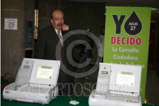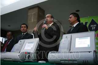 MÉXICO. D.F.22JULIO2008.- Jose Angel Avila secretario de gobierno del D.F., presentó las urnas electrónicas que se usaran en algunos puntos el próximo 27 de julio el día de la consulta ciudadana sobre la reforma energética. FOTO:RICARDO CASTELAN/CUARTOSCURO.COM