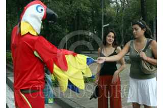 MÈXICO, D.F., 23JULIO2008.- Integrantes del Partido Verde Ecologista de México, realizaron una protesta en paseo de la reforma. 22 Especíes de pericos, loros y guacamayas estan en peligro de desaparecer. "No compres pericos silvestres y denuncia el tráfico Ilegal". FOTO: VICTORIA VALTIERRA/CUARTOSCURO.COM