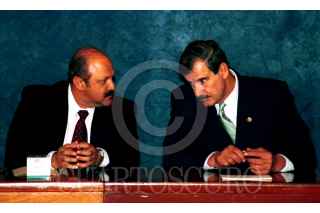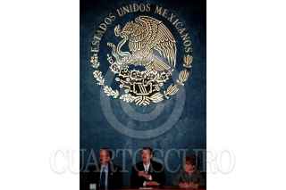 El presidente Vicente Fox, Francisco Gil Díaz secretario de Hacienda y la vocera Martha Sahagún, durante la resunión que sostuvo en los pinos con directivos de medios de comunicación de provincia. FOTO: Alberto Valdéz/CUARTOSCURO.COM.