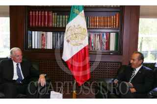 MEXICO D.F. 23JULIO2008. El presidente de los estados unidos Mexicanos, Lic. Felipe Calderón Hinojosa, se reunió con el Sr Craig Barret, Presidente del consejo de administración de intel Corporatión, en la Residencia Oficial de los Pinos. FOTO: ARIEL GUTIERREZ/CUARTOSCURO.COM
