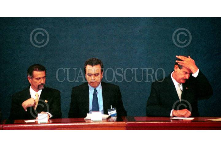 Carlos Abascal, Víctor Manuel Borras y Vicente Fox en la LXXVIII Sesion Ordinaria de la Asamblea General del Instituto de la Vivienda para los Trabajadores (Infonavit) que se llevo acabo en el salón Adolfo López Mateos de los Pinos. FOTO: Victoria Valtierra/CUARTOSCURO.COM